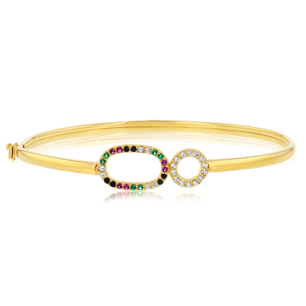 9ct Yellow Gold Silverfilled White And Multicolour Cubic Zirconia Bangle