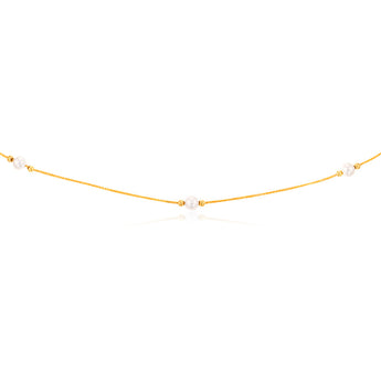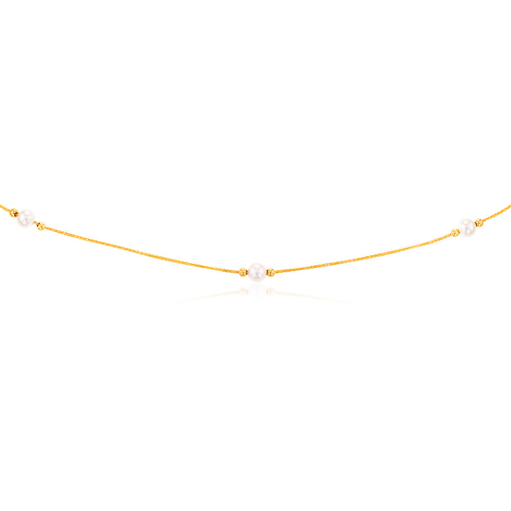 9ct Yellow Gold Silverfilled White Bead On 25 Gauge Wheat 60cm Chain