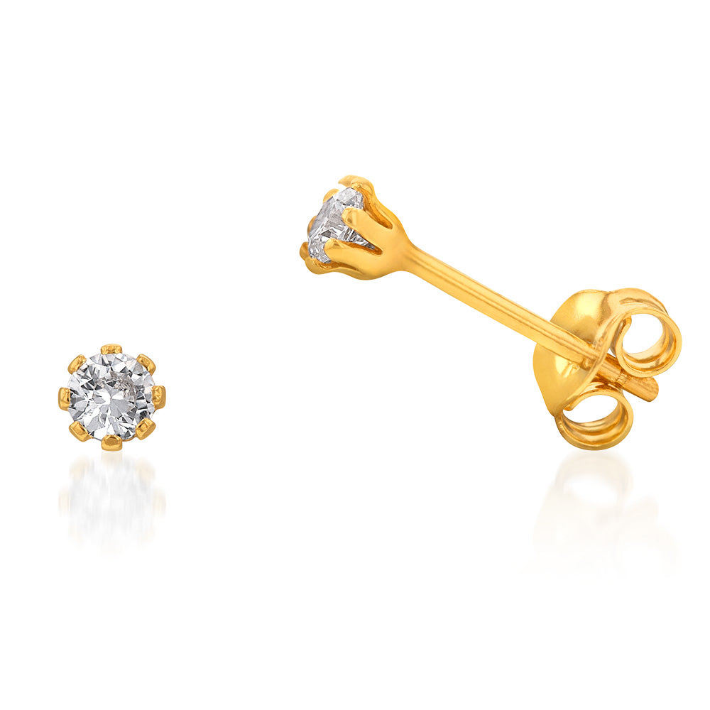 9ct Yellow Gold Silverfilled White Cubic Zirconia Stud Earrings