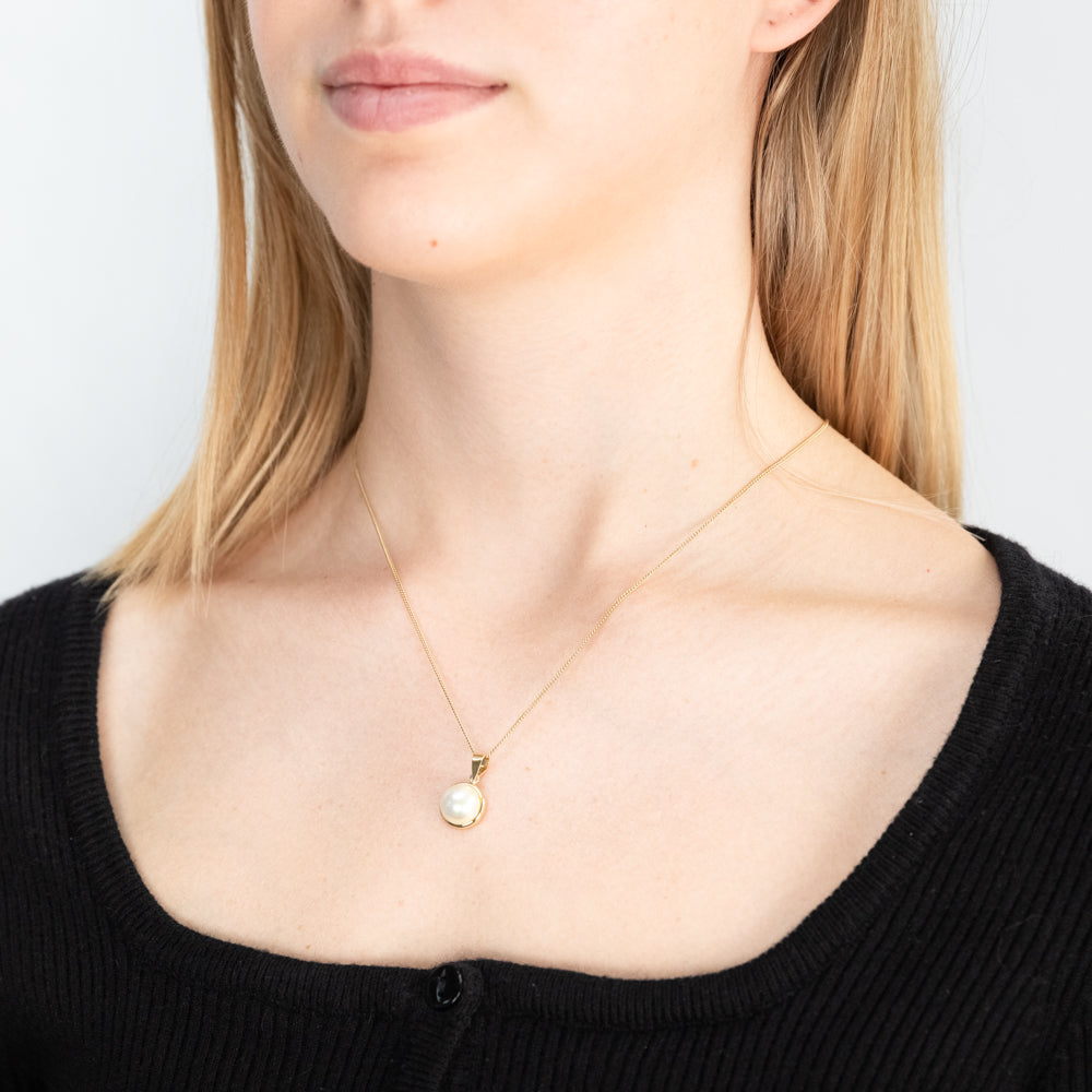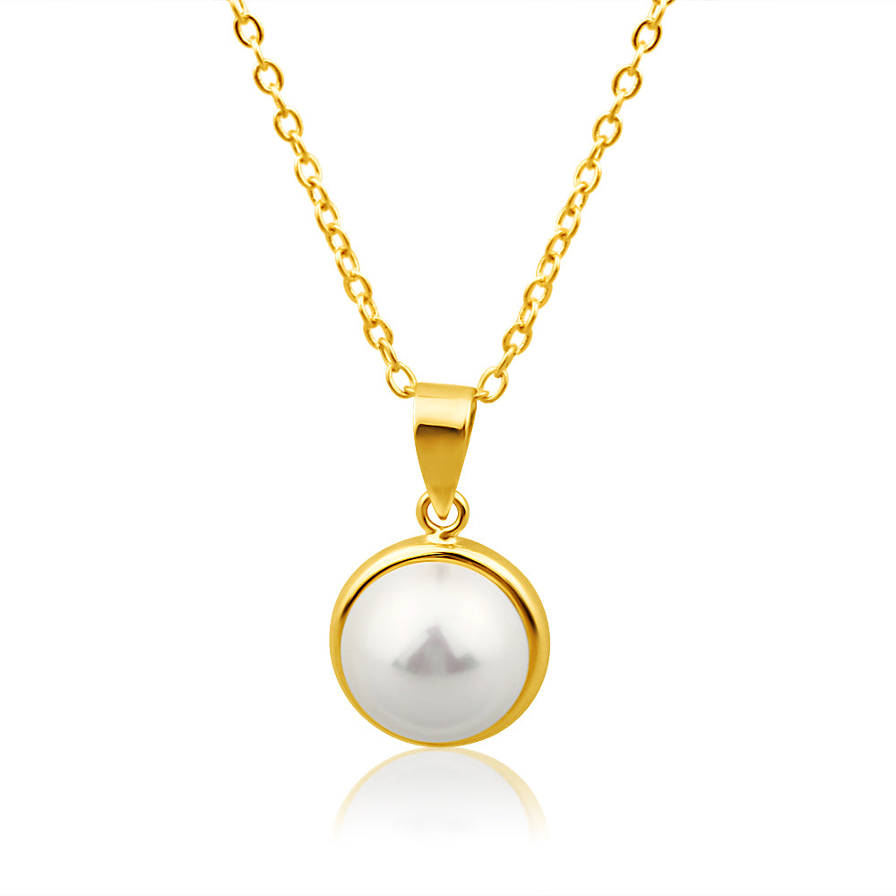 9ct Yellow Gold Simulated 9mm Pearl Pendant