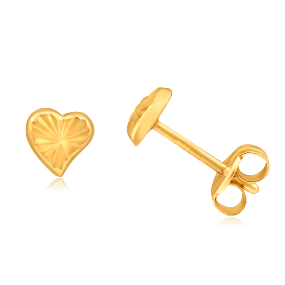9ct Yellow Gold Small Heart Stud Earrings