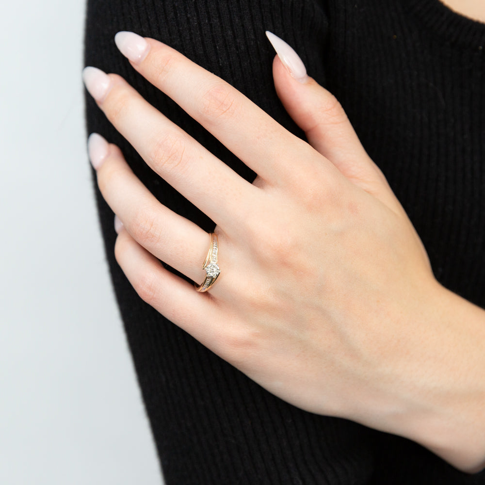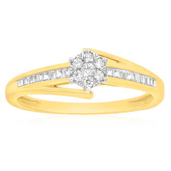 9ct Yellow Gold Solitaire Dress Ring with 27 Diamonds