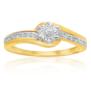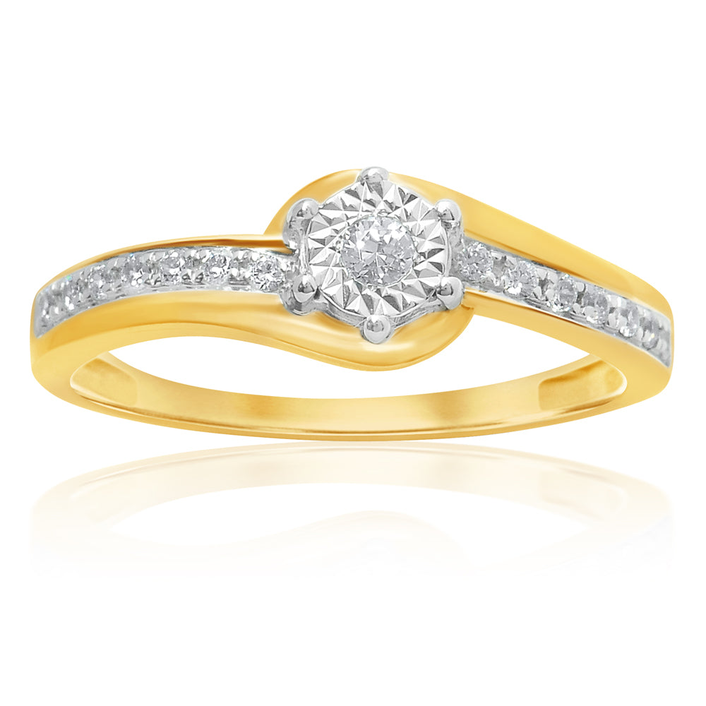 9ct Yellow Gold Solitaire Ring with 1/6 Carat of Diamonds