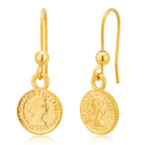 9ct Yellow Gold Sovereign Coin Drop Hook Earrings