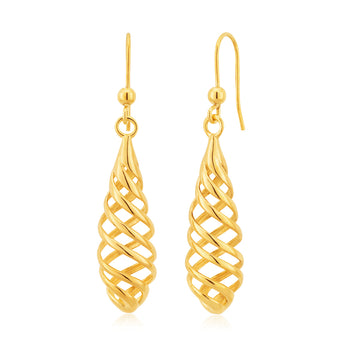 9ct Yellow Gold Spiral 4.5cm Drop Earrings