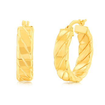9ct Yellow Gold Stripe Pattern Hoop Earrings