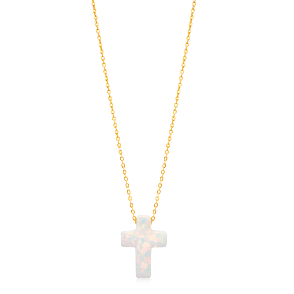 9ct Yellow Gold Synthetic Opal Cross Pendant