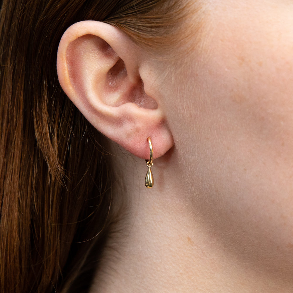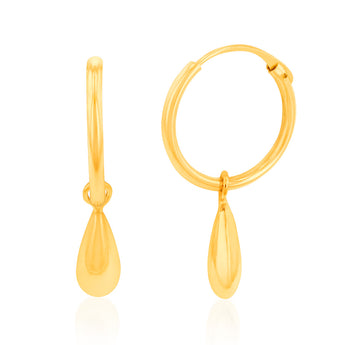 9ct Yellow Gold Tear Drop On Sleeper Earrings