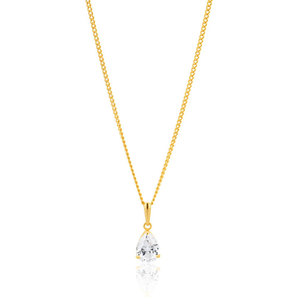 9ct Yellow Gold Teardrop Zirconia Pendant