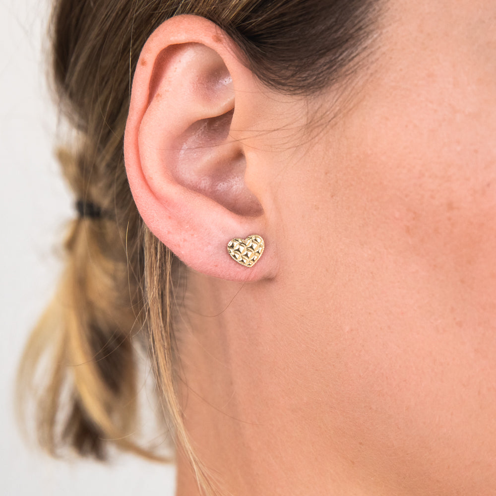 9ct Yellow Gold Textured Heart Stud Earrings