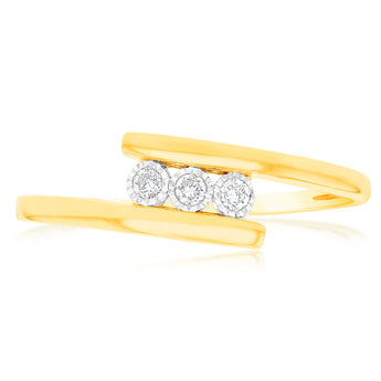9ct Yellow Gold Trilogy Diamond Ring Set with 3 Stunning Brilliant Diamonds