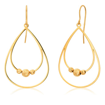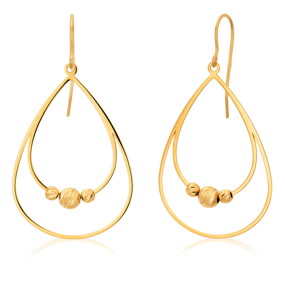 9ct Yellow Gold Trio of Beads Dangling Drop 22mm Earrings "Eleanor"