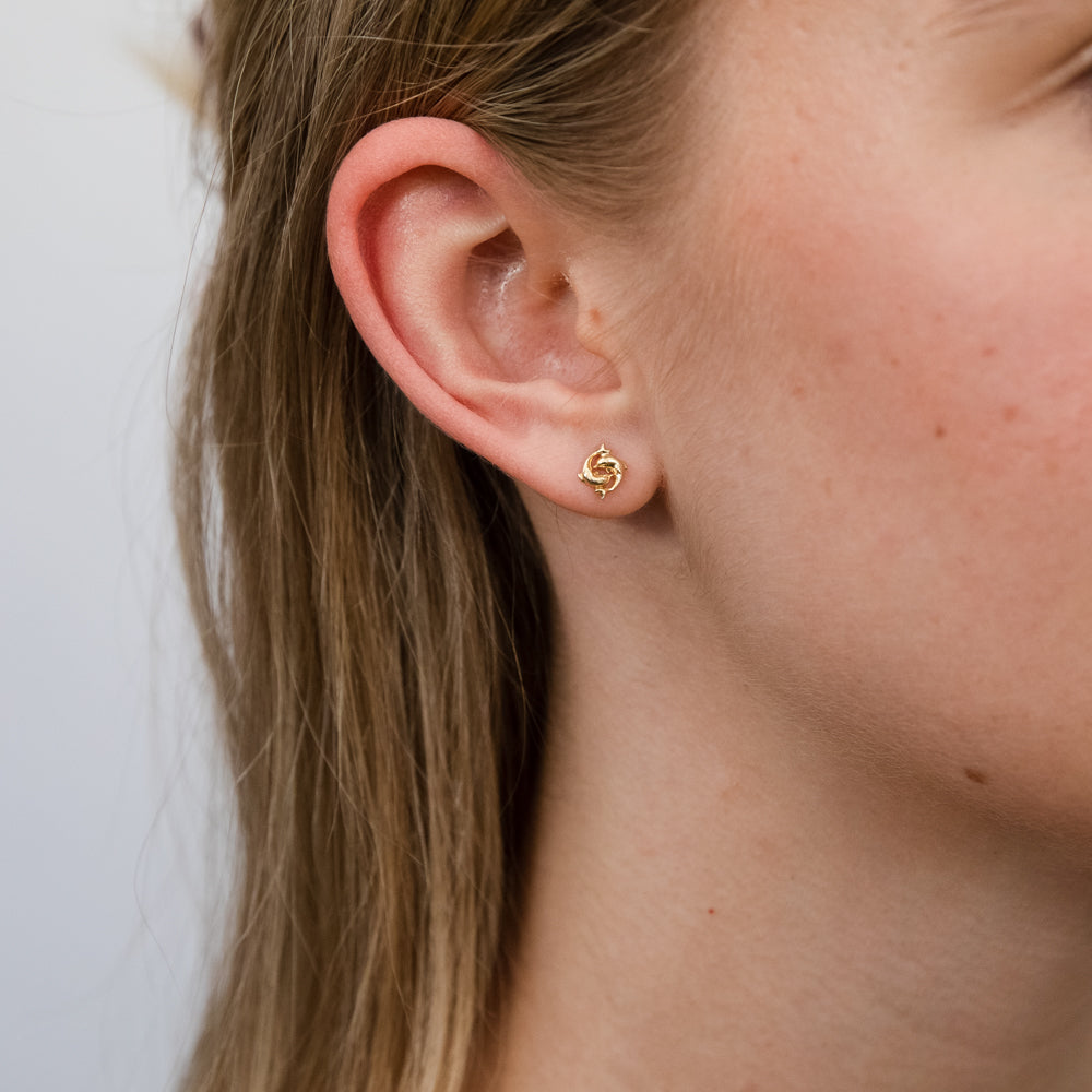 9ct Yellow Gold Twin Dolphin Stud Earrings