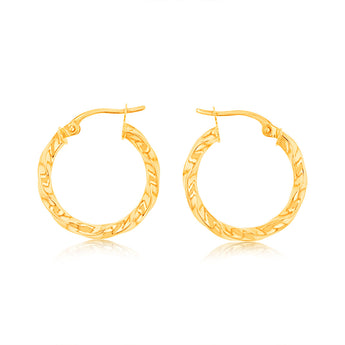 9ct Yellow Gold twist 15mm Hoops Earrings