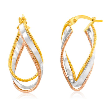 Twisted to perfection, these 9ct Yellow Gold Twisted Fancy Hoop Earrings will make jaws drop. With a bouquet of rose gold, silver and gold colours, these earrings scream trendy. Impress your loved ones by choosing these stylish gold hoop earrings for your next day out. These earrings will make the perfect special gift or even a well-earned treat to yourself.