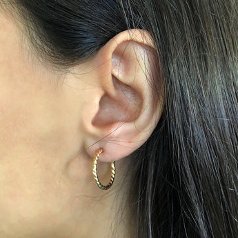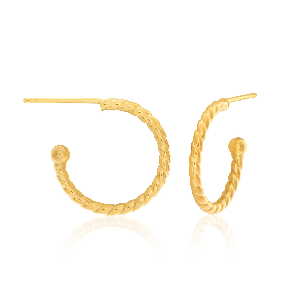9ct Yellow Gold Twisted Half Hoop 15mm Earrings