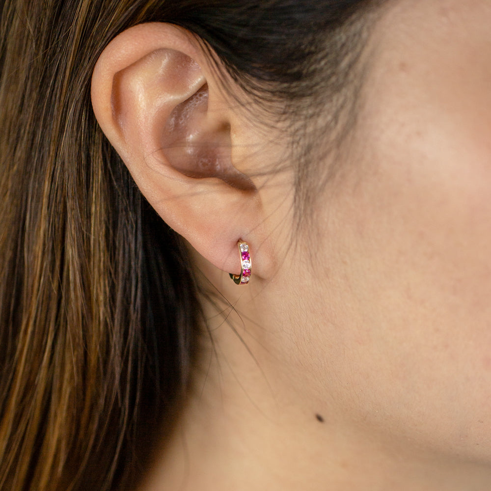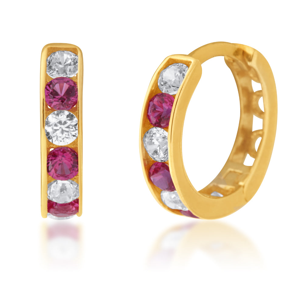 9ct Yellow Gold White and Red Cubic Zirconia 10mm Huggies