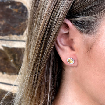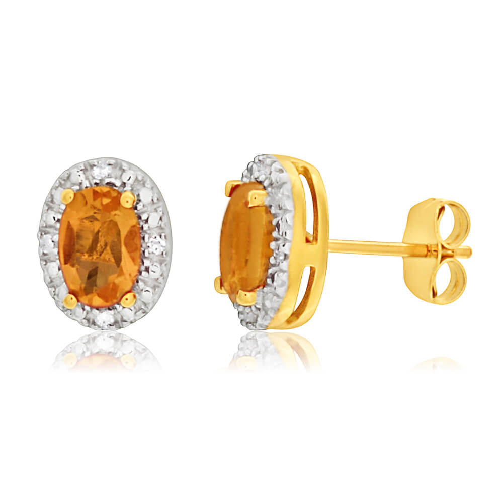 9ct Yellow Gold & White Gold Citrine + Diamond Stud Earrings