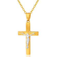 9ct Yellow Gold & White Gold Crucifix Pendant with Diamond cutting