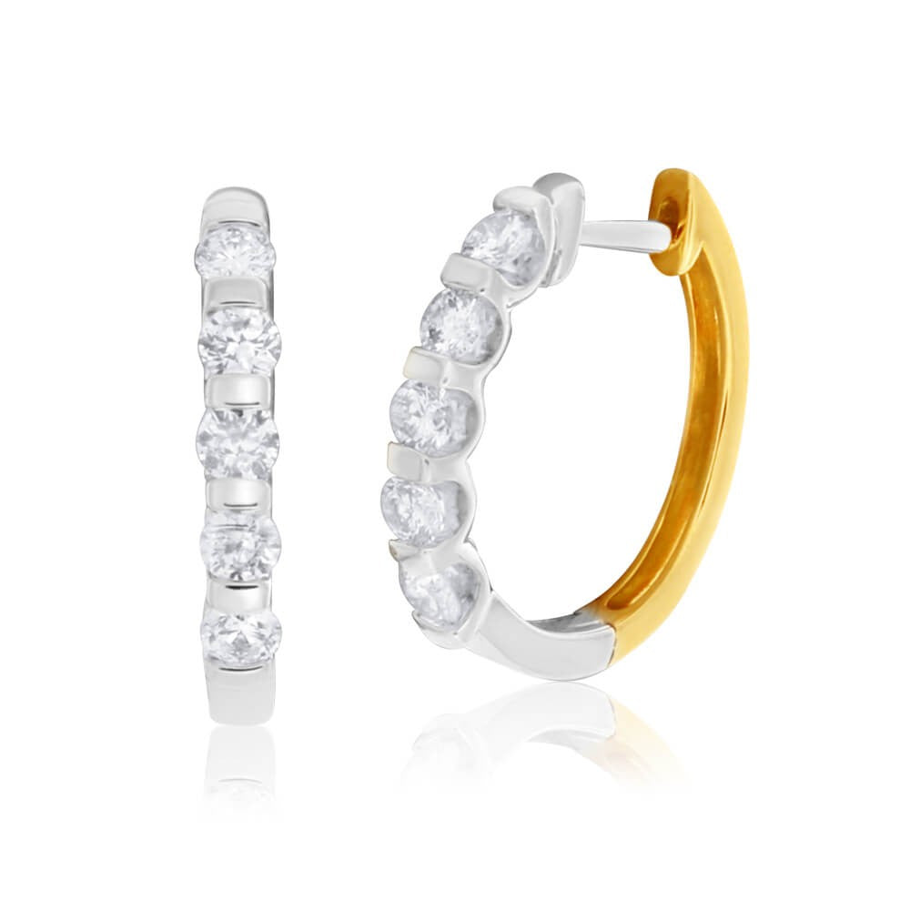 9ct Yellow Gold & White Gold Diamond Hoop Earrings