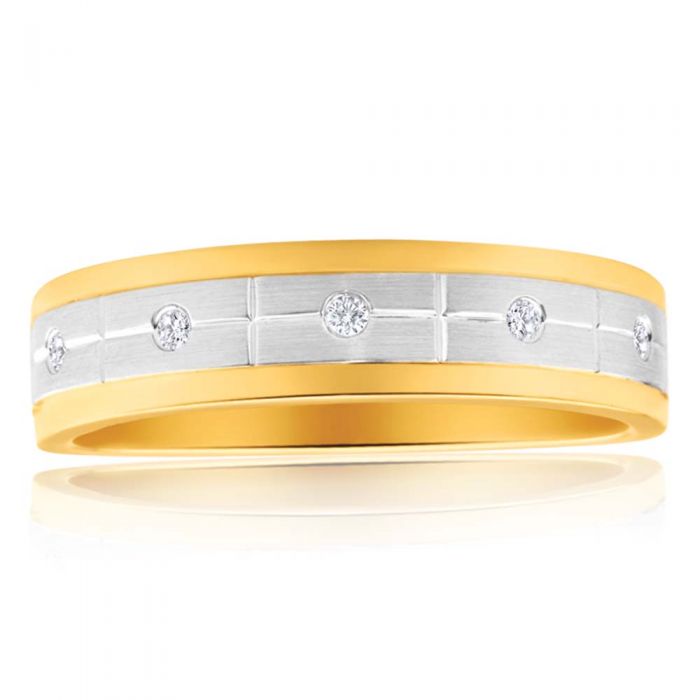 9ct Yellow Gold & White Gold Mens Ring With 0.05 Carats Of Diamonds