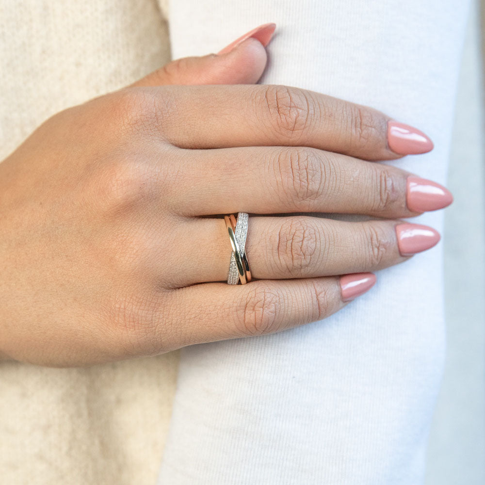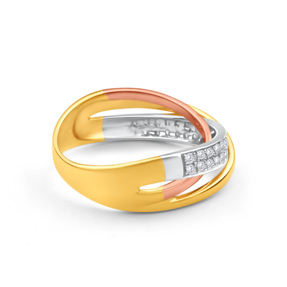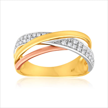 9ct Yellow Gold, White Gold & Rose Gold 1/6 Carat Diamond Ring