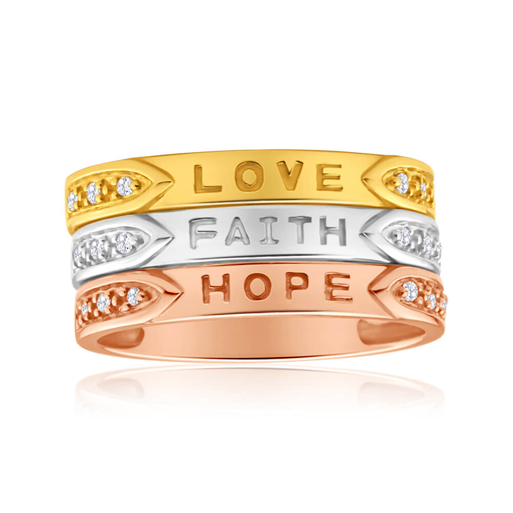 9ct Yellow Gold, White Gold & Rose Gold Diamond 3 Ring Set