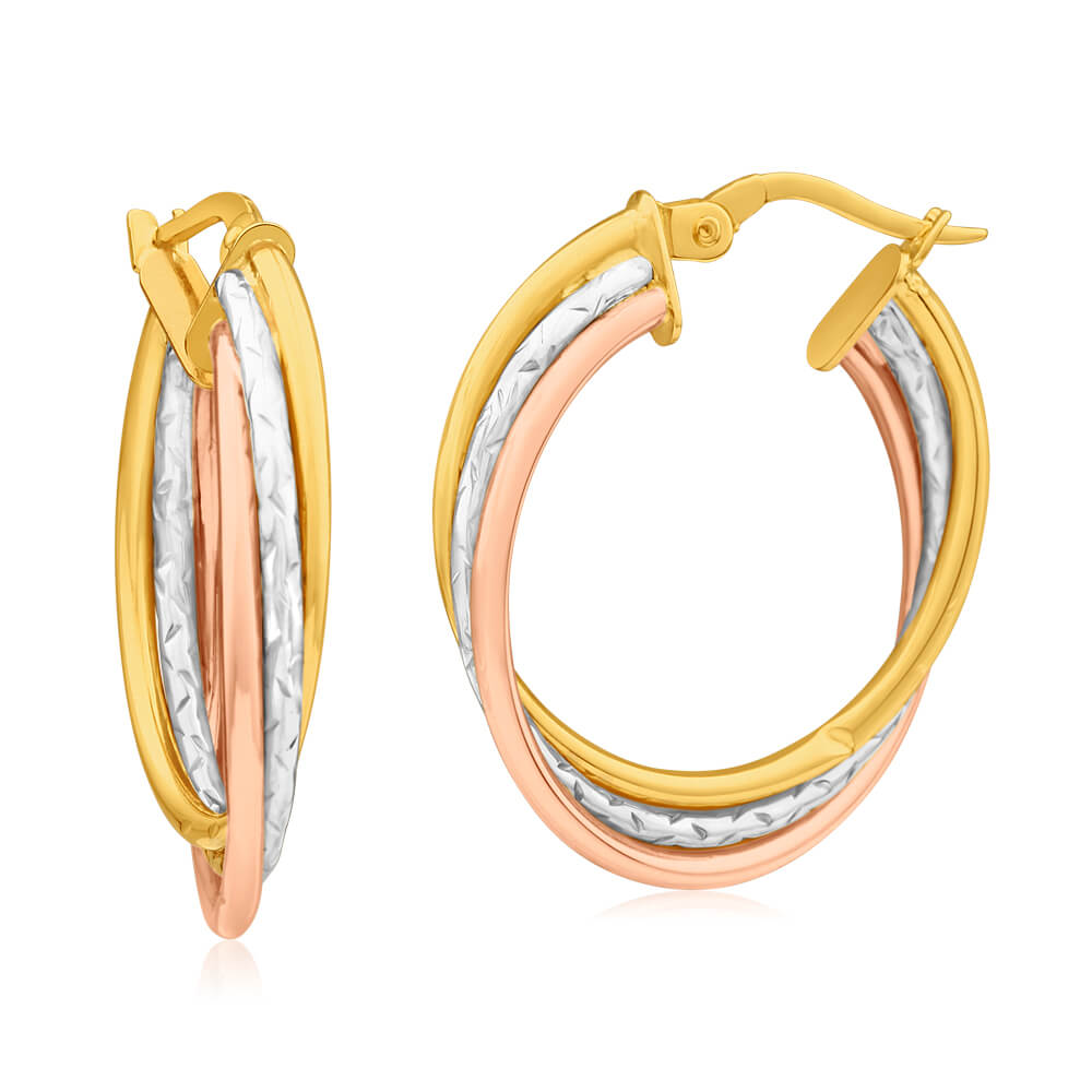 9ct Yellow Gold, White Gold & Rose Gold Hoop Earrings Kali