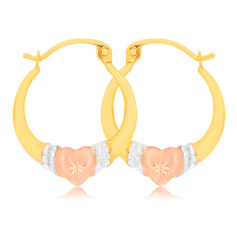 9ct Yellow Gold, White Gold & Rose Gold Love Hoop Earrings