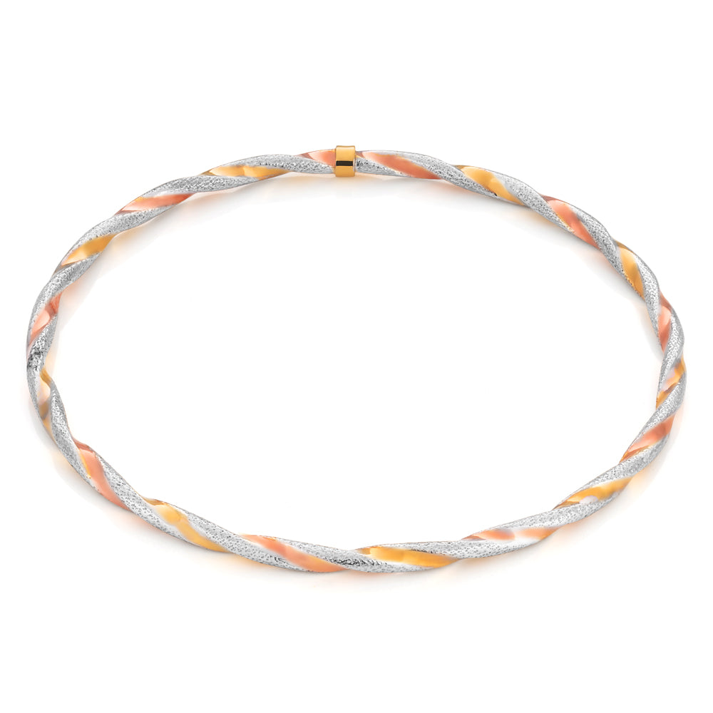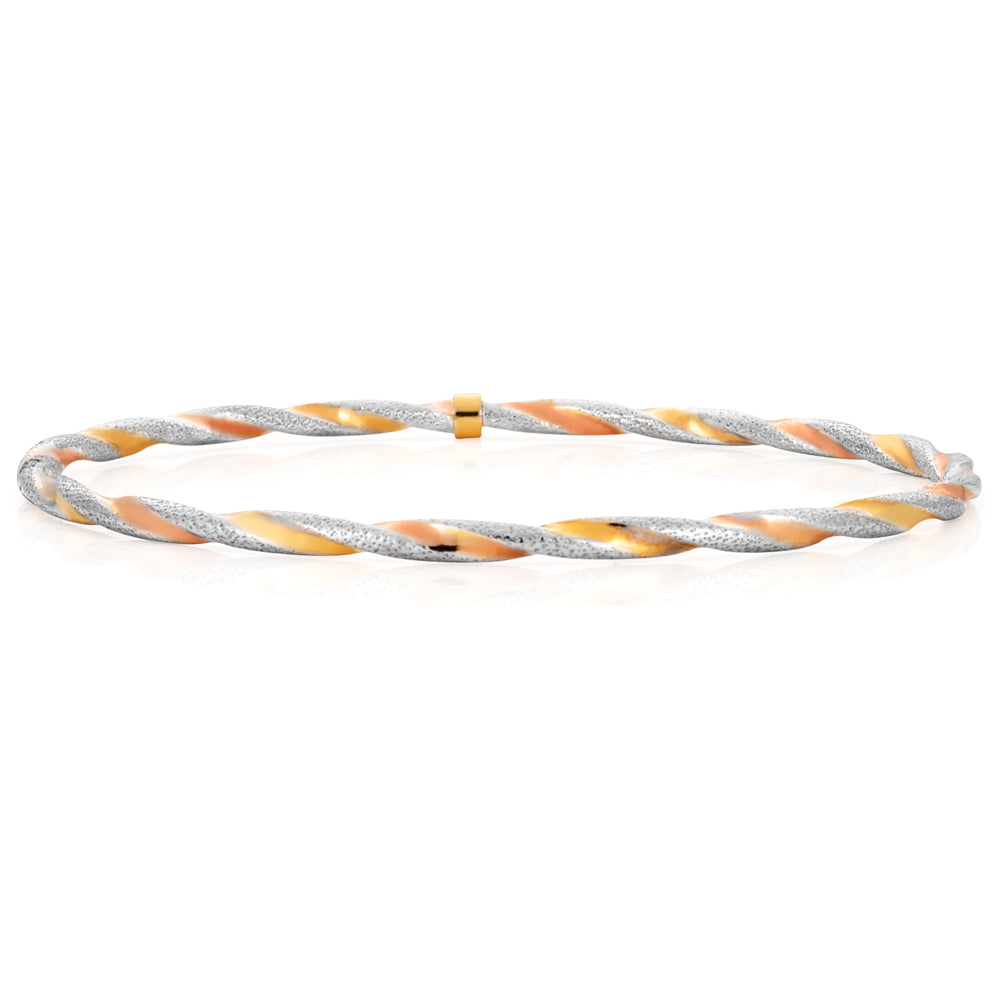 9ct Yellow Gold, White Gold & Rose Gold Twist Bangle