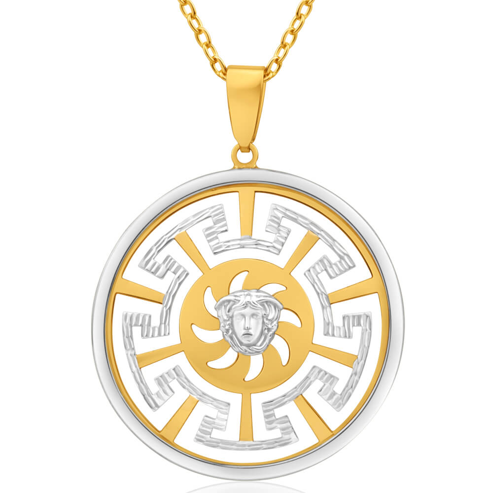 9ct Yellow Gold & White Tone Greek Key Pendant