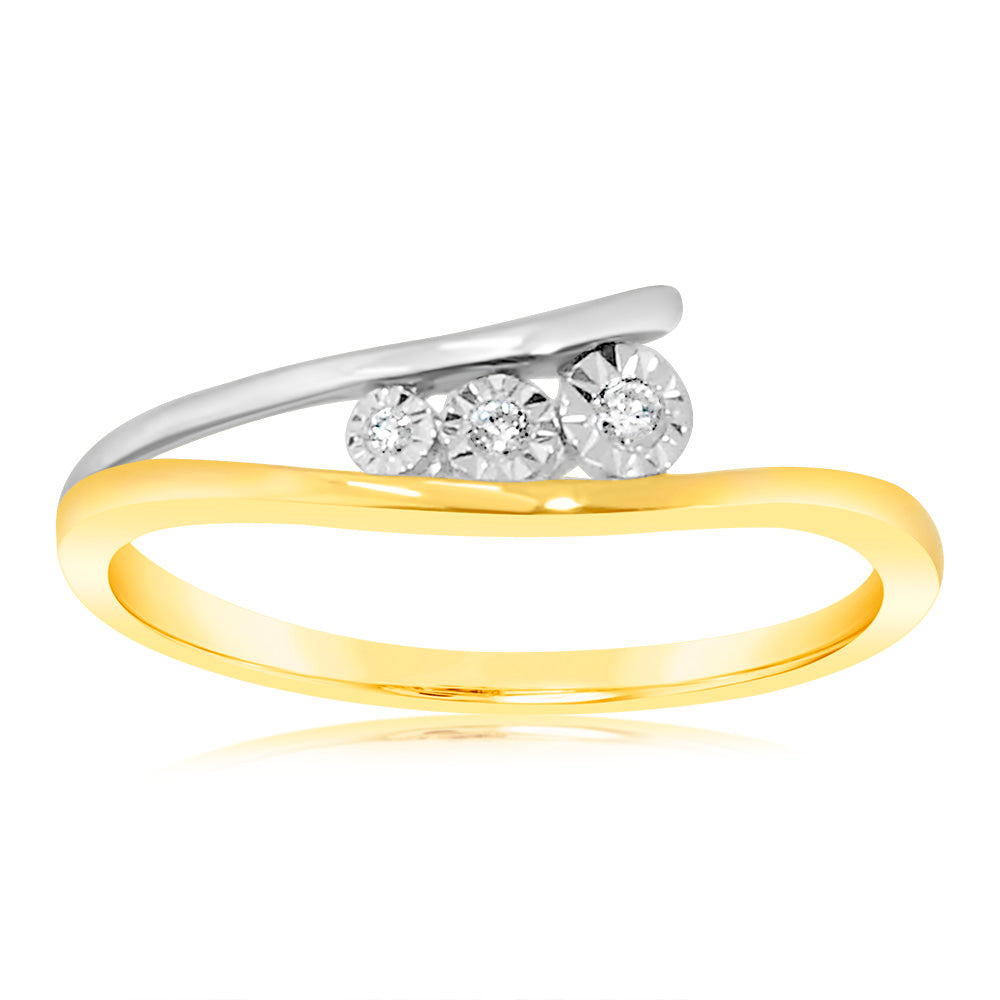 9ct Yellow Gold with 3 Brilliant Diamonds Dress Ring