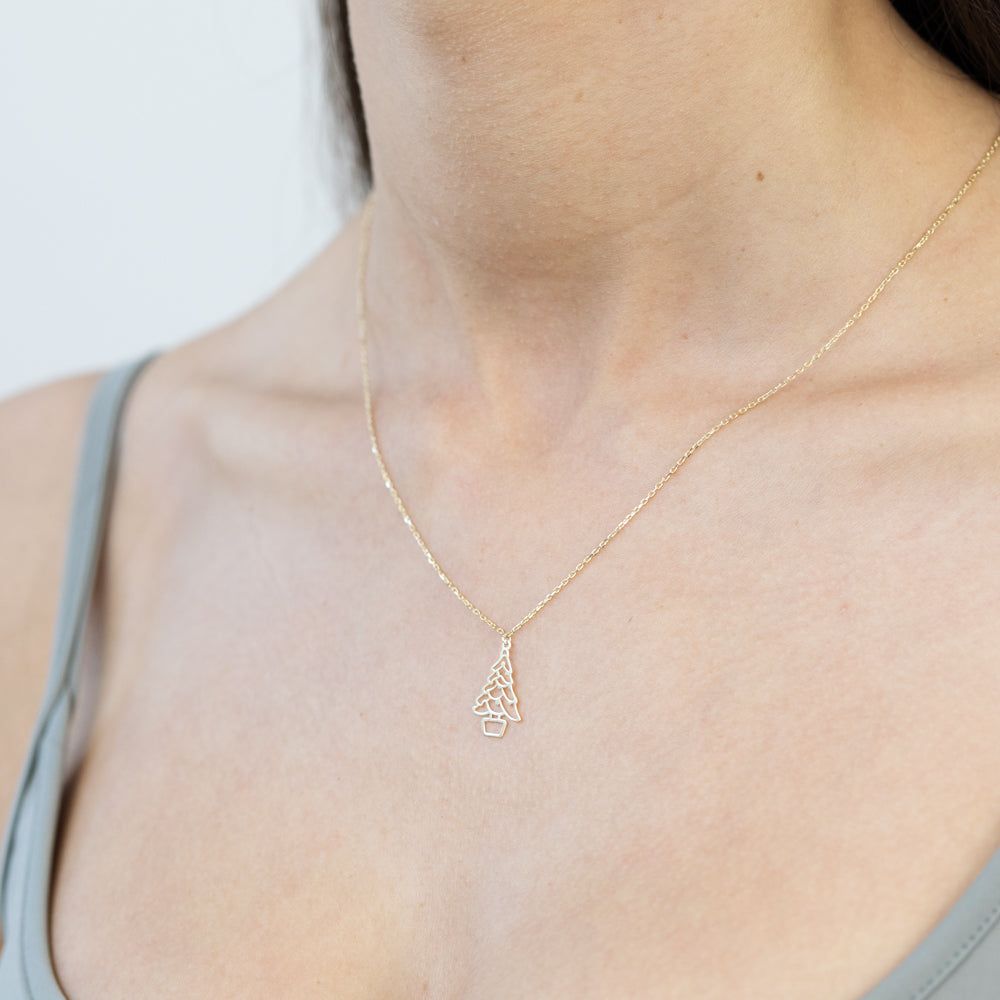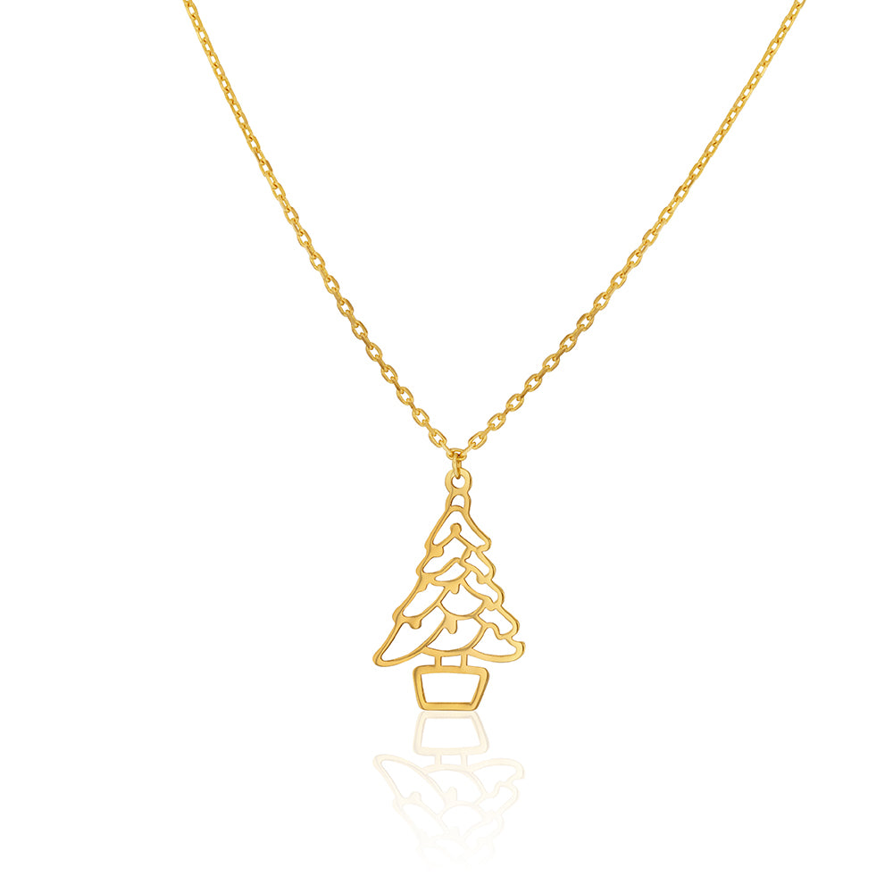 9ct Yellow Gold Xmas Tree Pendant With Chain