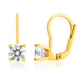 9ct Yellow Gold Zirconia Claw Set Euro Hook Earrings