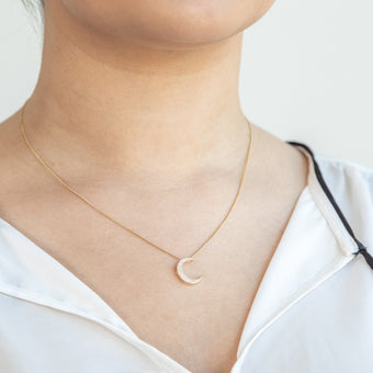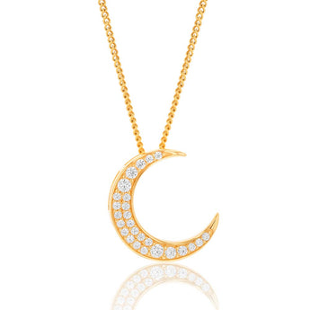 9ct Yellow Gold Zirconia Crescent Moon Pendant
