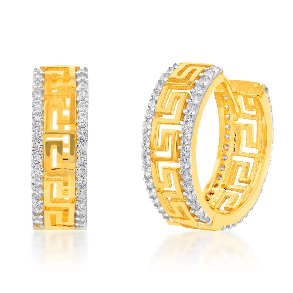 9ct Yellow Gold Zirconia Greek Key Huggie Hoops