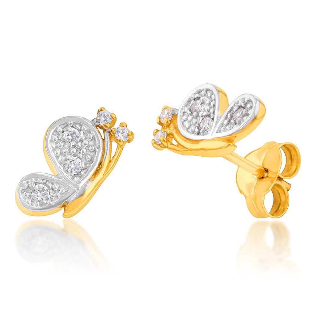 9ct Yellow Gold Zirconia Half Butterfly Studs