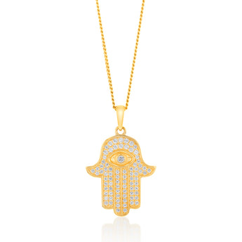 9ct Yellow Gold Zirconia Hamsa Pendant
