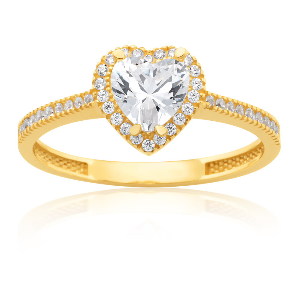 9ct Yellow Gold Zirconia Heart Ring