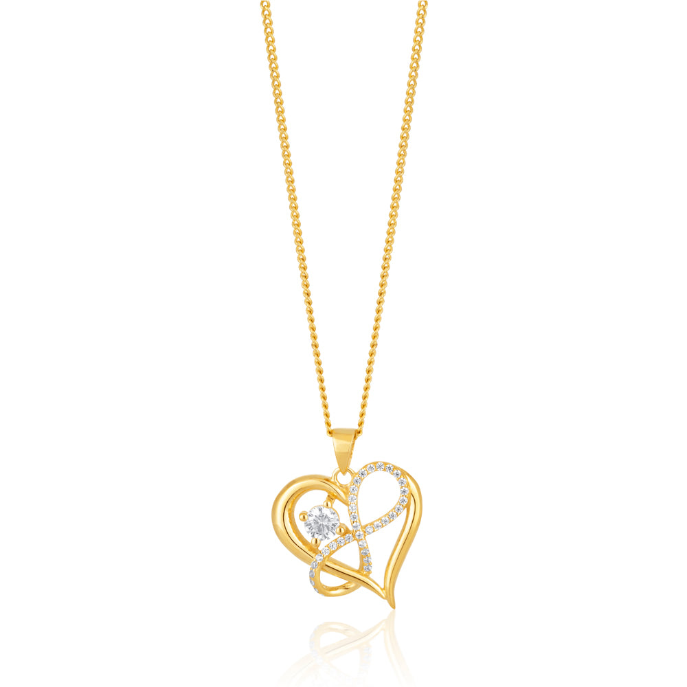 9ct Yellow Gold Zirconia Infinity & Heart Pendant