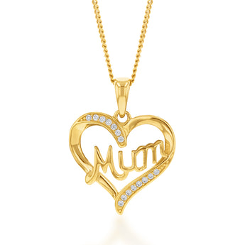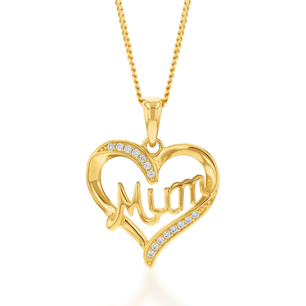 9ct Yellow Gold Zirconia 'Mum' Heart Pendant