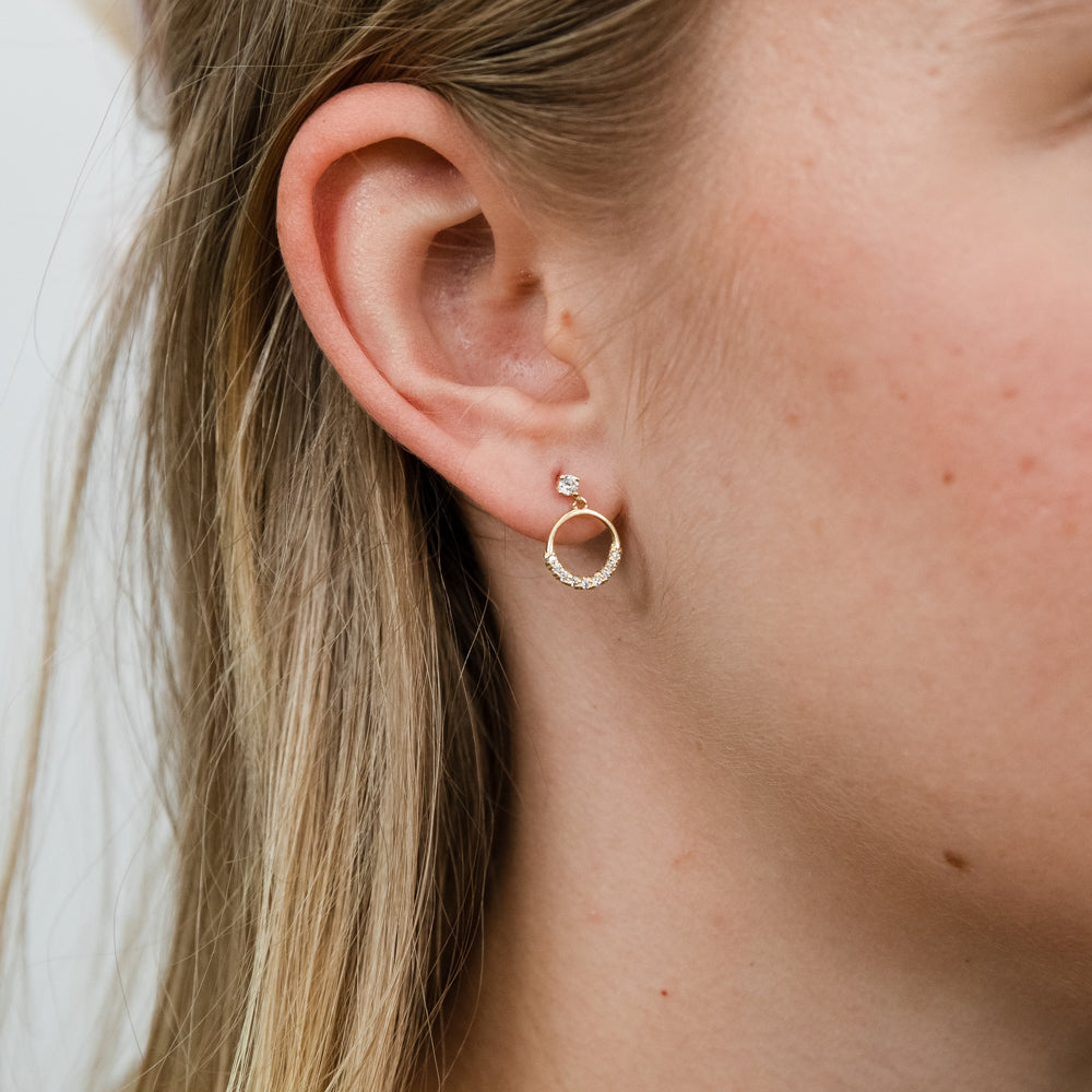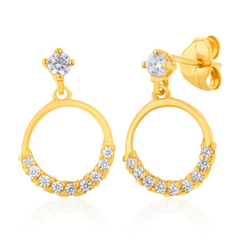 9ct Yellow Gold Zirconia Open Circle Drop Earrings