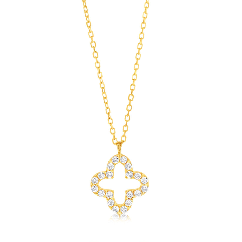 9ct Yellow Gold Zirconia Open Flower Pendant On Chain