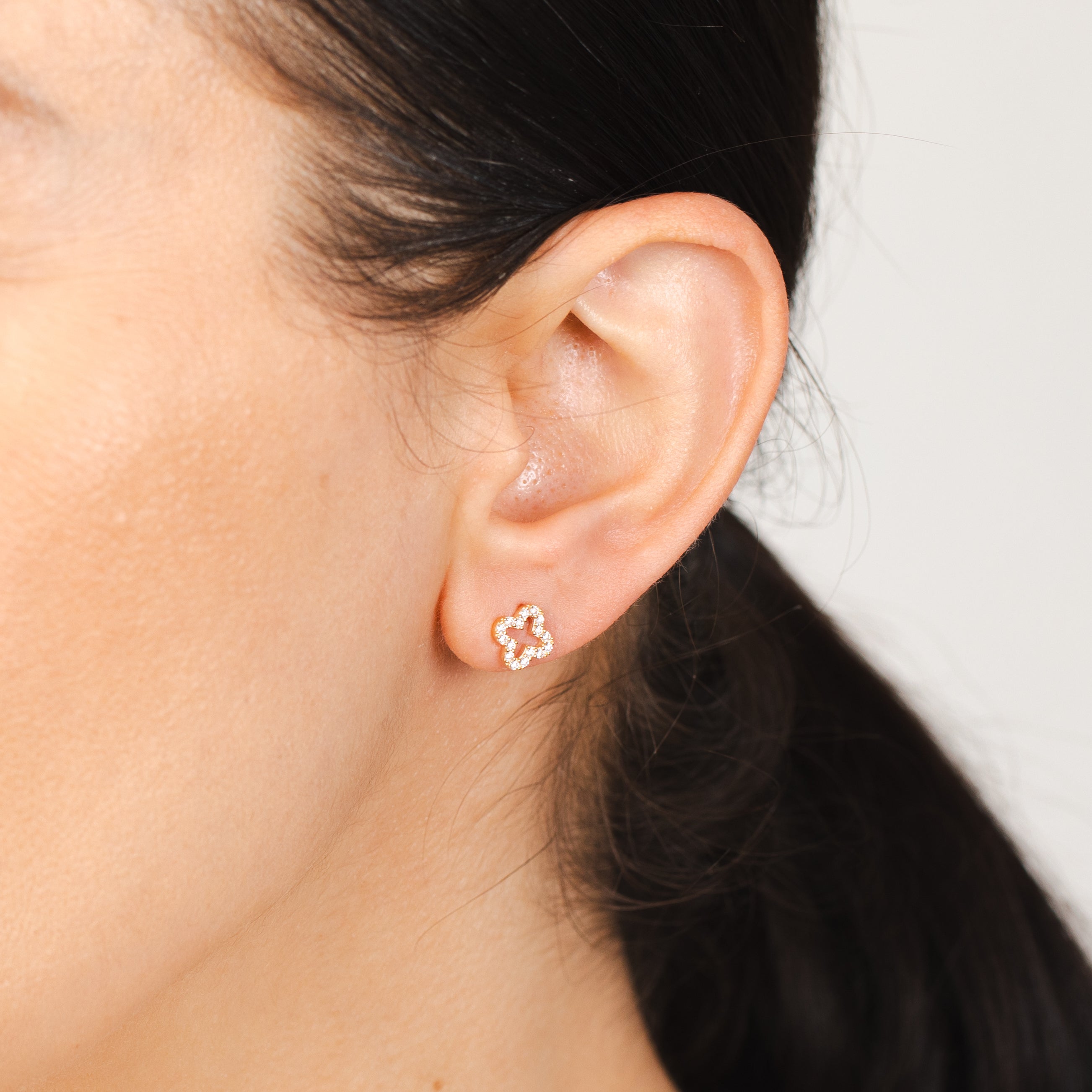 9ct Yellow Gold Zirconia Open Flower Stud Earrings