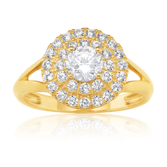 9ct Yellow Gold Zirconia Round Fancy Ring