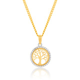 9ct Yellow Gold Zirconia Tree of Life Round Pendant