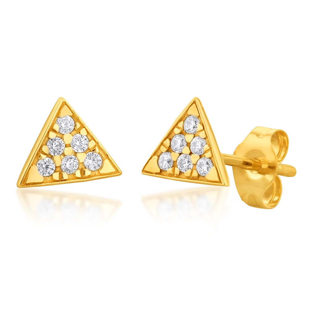 9ct Yellow Gold Zirconia Triangle Studs