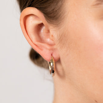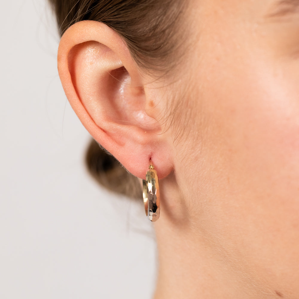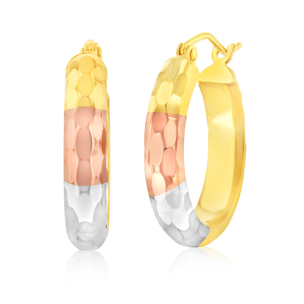 9ct Yellow Rose And White Gold Silverfilled Three Tone Diamond Cut Half Round Hoop Earrings