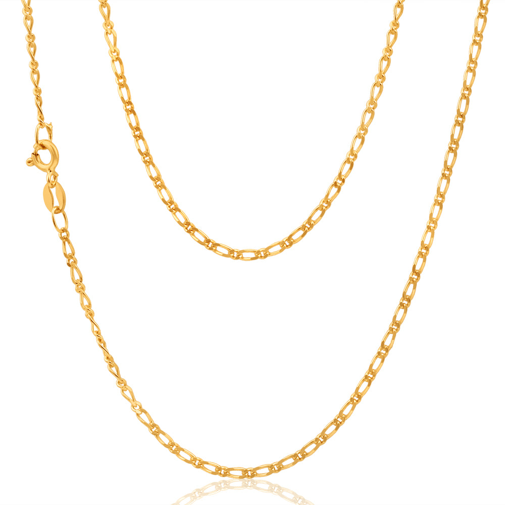9ct Yellow Solid Gold 1:1 Figaro 50cm Chain 50Gauge