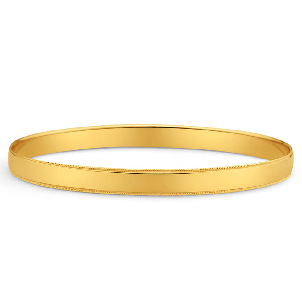 9ct Yellow Solid Gold 6mm x 65mm Edge Milgrain Engraved Bangle